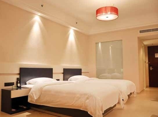 客房設(shè)施 國內(nèi)長途電話中央空調(diào)浴室化妝放大鏡24小時熱水免費洗漱用品獨立淋浴間吹風機拖鞋獨立寫字臺電熱水壺咖啡壺/茶壺