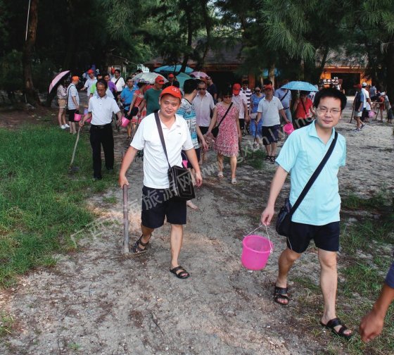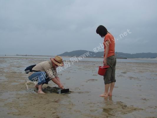 通過老朋友環(huán)球旅行社的王姐早早幫我們預(yù)定了趕海的行程,8月2號早晨,我們一行人來到海邊,挑上拿手的工具,奔向海灘去鳥~