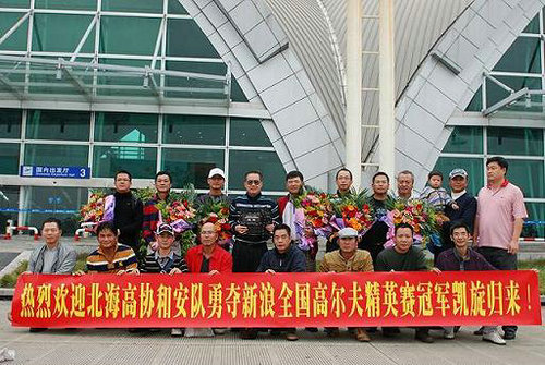 據(jù)報道,近日,北海高協(xié)和安高爾夫球隊在新浪網(wǎng)舉辦的全國性高爾夫球賽事中,代表廣西奪得團體冠軍載譽歸來,11月30上午全隊從成都飛抵北海,在機場受到熱烈的歡迎與祝賀。