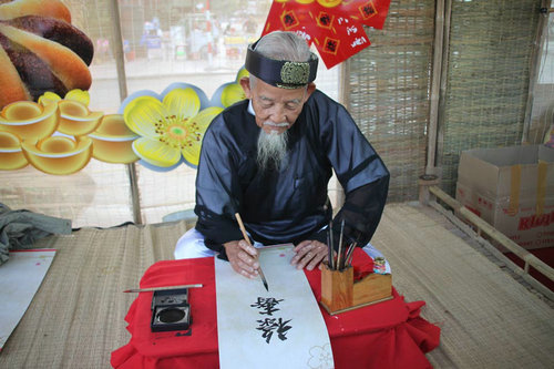 越南人過春節(jié)也有貼春聯(lián)習慣。以前春聯(lián)用漢字書寫,文字拼音化以后,現(xiàn)在大部分春聯(lián)改用拼音文字,每個拼音字是一個方塊,自成風格。