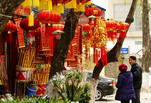 春節(jié)是越南民間最大也最熱鬧的傳統(tǒng)節(jié)日。越南人把春節(jié)視為辭舊迎新的日子,一般從農(nóng)歷12月中旬開始辦年貨準備過年,而歷來越南春節(jié)最不可少的大概要數(shù)鮮花、年粽、春聯(lián)、爆竹了。