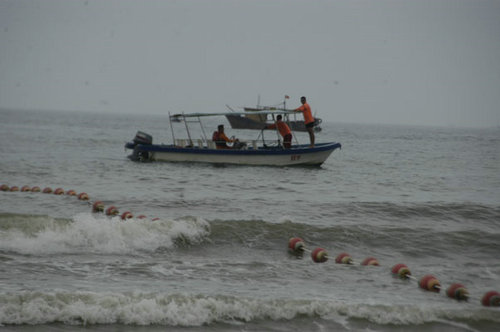 另外據(jù)了解,近日,為迎接夏日旅游高峰期的到來(lái),銀灘景區(qū)公司投入大量資金,更新浴場(chǎng)內(nèi)1000多米長(zhǎng)的警戒線,救生隊(duì)員們加班加點(diǎn)將一個(gè)個(gè)浮球串捆固定,并在劃定好的海域上定位加固。