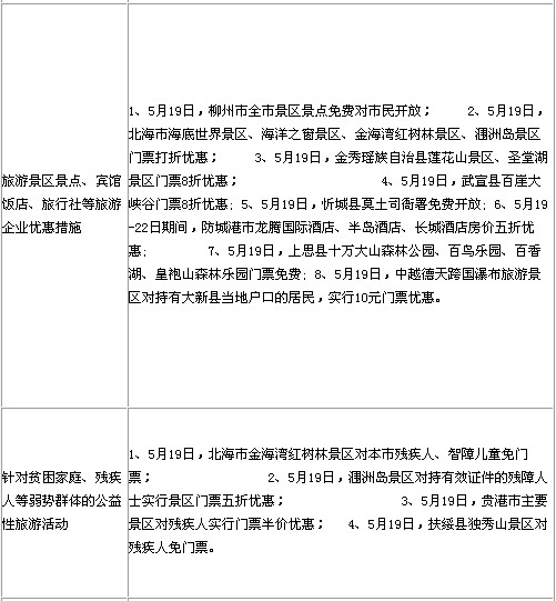 2013年5月19日的“中國旅游日”即將到來,在此期間廣西壯族自治區(qū)推出24條惠民措施。其中北海潿洲島、紅樹林景區(qū)、海洋之窗等各大景點(diǎn)都有相應(yīng)的優(yōu)惠活動,計(jì)劃前往游玩的朋友可以注意一下咯~