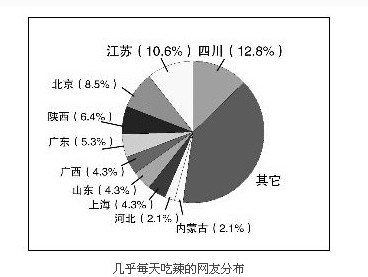 近日,“中國(guó)城市食辣報(bào)告”網(wǎng)上發(fā)起調(diào)查,將持續(xù)25天,參與的網(wǎng)友有來(lái)自北京、四川、江蘇、廣東、廣西、浙江、上海、湖南、陜西、福建等地,截至5月13日晚上7點(diǎn)33分,廣西的網(wǎng)友占到3.8%排在第五位,而在吃辣頻率的調(diào)查中,幾乎每天吃辣的廣西網(wǎng)友占到3.9%在這項(xiàng)指標(biāo)中,廣西都排在第七位。您喜歡吃辣嗎?41.5%的網(wǎng)友都選擇了“非常喜歡”只有5%的網(wǎng)友選擇“不喜歡”對(duì)于吃辣的頻率,有40.6的網(wǎng)友,幾乎每天都吃辣,在能承受辣的程度上,以吃火鍋時(shí)的辣度為例,44.7的網(wǎng)友選擇了“中辣”,有6%的網(wǎng)友選擇了清湯,就是一點(diǎn)辣都不吃。