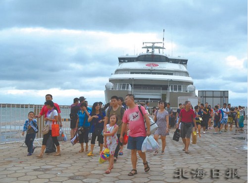 據(jù)新奧公司工作人員介紹,當(dāng)日由于天氣原因,該公司開往潿洲島的只有噸位較大的“北游12”,該船可載客近千人,預(yù)計(jì)當(dāng)日航班為3班,游客運(yùn)載量約為3000人。