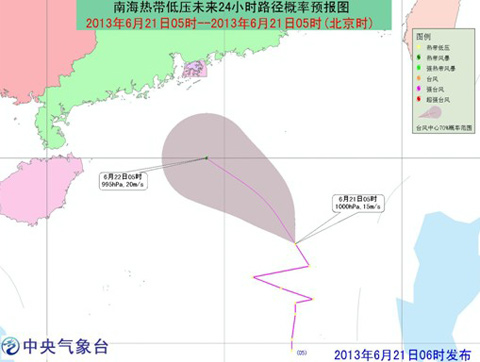 南海熱帶低壓未來24小時路徑概率預(yù)報圖