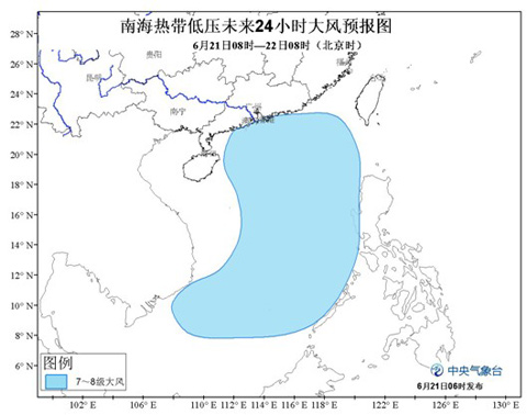 另據(jù)中央氣象臺最新消息,南海熱帶低壓的中心21日05時位于海南省文昌市東偏南方大約690公里的海面上,就是北緯17.7度、東經(jīng)117.0度,中心附近最大風(fēng)力有7級(15米/秒),中心最低氣壓為1000百帕。