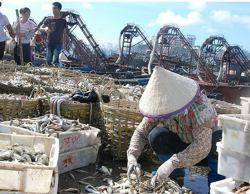 北海漁民開捕歸來(lái) 碼頭交易忙