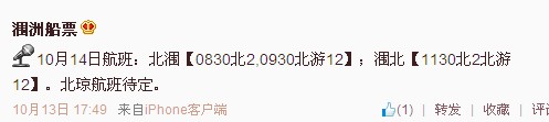 北海船務(wù)公司今天也只開通了上午潿洲島的航班,預(yù)計(jì)下午起開始停航。建議島上的游客朋友今天就啟程回市區(qū),此次停航時(shí)間可能要至少持續(xù)三四天。