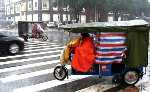居住在云南路的杜先生說(shuō)起三輪車就一肚子火!去年剛買了新汽車,上班經(jīng)過(guò)和安商港路段,車門被一輛逆向行駛的電動(dòng)三輪車刮擦一大塊,那輛違反交通法規(guī)、無(wú)牌無(wú)證。