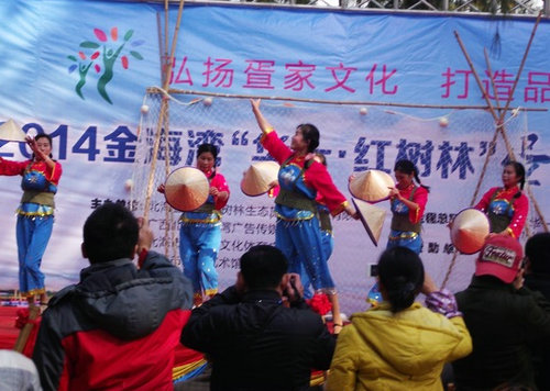據(jù)報(bào)道,為弘揚(yáng)疍家文化打造品質(zhì)景區(qū),元旦當(dāng)天,北海市在金海灣紅樹林生態(tài)旅游區(qū)舉辦“2014金海灣‘華一·紅樹林’疍家民俗文化節(jié)”,富有本地民俗特色的疍家婚禮、疍家民謠、咸水歌、英姿颯爽的地角女民兵出現(xiàn)在市民和游客面前,深受大家的追捧。