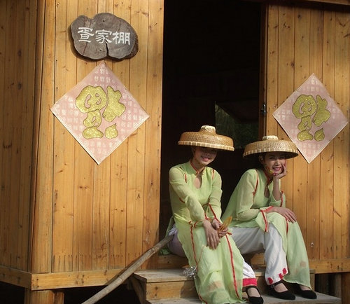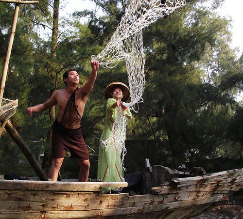 在疍家婚禮巡演中,由“男方家”沿著指定路線前往“女方家”疍家棚,接著“坐艇”前往“拜堂”,期間有美妙的疍家民謠、咸水歌表演。在長(zhǎng)廊門口的疍家迎賓女,身穿疍家服飾迎接嘉賓、游客等參觀疍家風(fēng)情長(zhǎng)廊并講解。最后是疍家女民兵巡演及歡樂體驗(yàn)拉大網(wǎng)捕魚活動(dòng)。