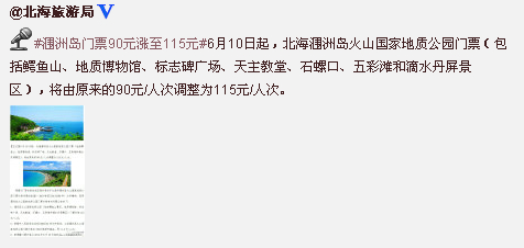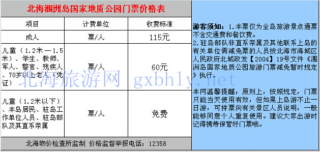 (北海旅行社訊)來自北海旅游局官網(wǎng)12日的消息,經(jīng)自治區(qū)物價局批準(zhǔn),從6月10日起,北海潿洲島火山國家地質(zhì)公園門票價格(包括鱷魚山、地質(zhì)博物館、標(biāo)志碑廣場、天主教堂、石螺口、五彩灘和滴水丹屏景區(qū)),由原來的90元/人次調(diào)整為115元/人次。