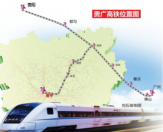 貴廣高鐵跨黔、桂、粵三省區(qū),起于貴州省貴陽市,止于廣東省廣州市,全長約857公里,其中廣東境內207.5公里、廣西境內348.5公里、貴州境內301公里,設計時速250公里,預留時速300公里。在廣西境內途經柳州市三江縣,桂林市龍勝縣、臨桂縣、桂林市區(qū)、靈川縣、陽朔縣、恭城,以及賀州鐘山縣和八步區(qū)。