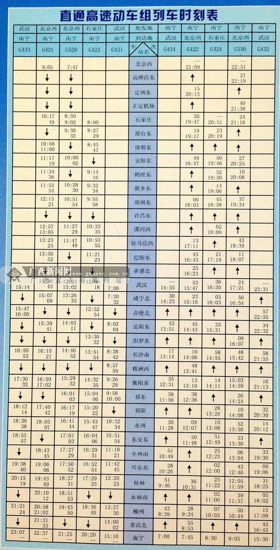 從南寧鐵路局召開的新聞通氣會了解到,大家期盼已久的南寧至北京西、石家莊、武漢等跨省高速動車組列車將于9月25日正式開行,南寧北京兩地間首次實(shí)現(xiàn)“半日到達(dá)”。目前,鐵路售票窗口、12306網(wǎng)站以及各代售點(diǎn)均已開售25日南寧至北京的高鐵動車票。