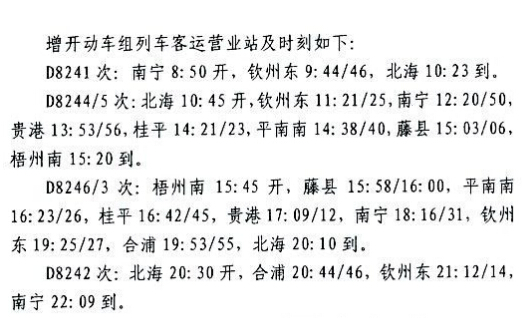 國(guó)慶北海方向再增開四趟動(dòng)車
