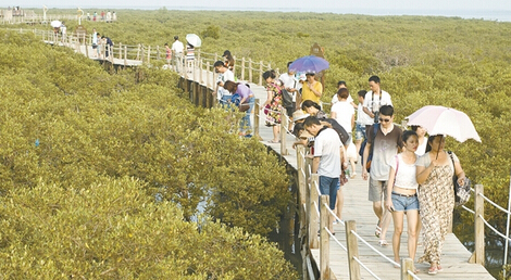 記者在走訪中了解到,今年“十一”黃金周的天氣總體較好,適宜出行。10月2日上午、4日上午市區(qū)均下了一場較大的陣雨,5日起受中等強度冷空氣影響,海面風力較大。然而,短暫的降雨和溫柔的冷空氣,并沒降低游客們暢游北海的熱情。每天,銀灘、潿洲島、珠海路老街、金海灣紅樹林、海底世界、海洋之窗、星島湖、大江埠、合浦漢文化博物館、嘉和?冠山海等十大景區(qū)游人如織,歡樂如潮。