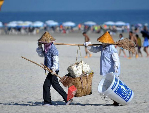 據(jù)市環(huán)衛(wèi)處負責人介紹,今年“十一”黃金周,天氣不錯,前來我市旅游的游客非常多,環(huán)衛(wèi)工人的工作量也相應增加,每天從早上5點開始,一直忙到晚上11點。七天長假里,海城區(qū)共清理垃圾4316噸,銀海區(qū)共清理垃圾1149噸。