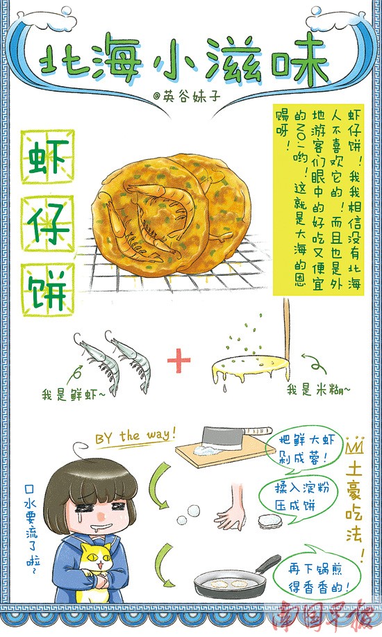 “英谷妹子”馬上想到北海的炸蝦餅、欖錢(qián)車(chē)螺、米水糕等。要是能把這些推介給游客多好啊,可是如何介紹呢?她想,最好畫(huà)出來(lái),除了介紹來(lái)歷,還得介紹民間做法和吃法。
