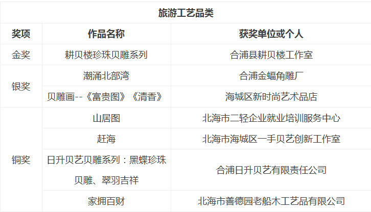 10月21日,在北海南珠宮酒店組織專家開展的初評工作,選出了42件(套)入圍作品。10月23日至11月15日,所有入圍商品在北海銀灘公園游客中心集中展示,同時開通網(wǎng)絡投票和手機微信投票。