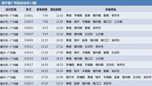 26日起南寧廣州每天12趟動車