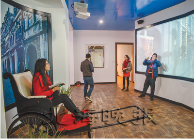 當(dāng)天,記者和商戶代表們首先來到位于珠海中路102號(hào)的老城歷史文化館。該館通過多媒體、場(chǎng)景復(fù)原、實(shí)物等方式,展示了老城獨(dú)具特色的歷史遺存,在梳理北海老城的歷史脈絡(luò)中重現(xiàn)昔日繁華景象。參觀者梁女士坐上館內(nèi)設(shè)置的黃包車后,面前的大幅屏幕隨即亮了起來,用第一人稱的視角展現(xiàn)著百年老街的發(fā)展歷程,“好像車夫拉著我穿梭在民國時(shí)代的老街,以這樣的方式游覽老街感覺很特別!绷号空f。