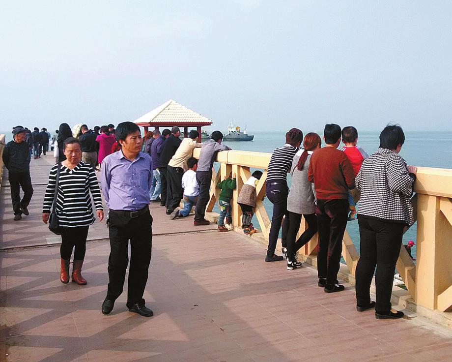 3月8日是周日,北海風(fēng)和日麗,陽光燦爛。趁著這美好的天氣,許多市民和游客來到北岸海邊,感受戶外明媚的陽光。記者在外沙島看到,海邊延伸到海面幾十米遠(yuǎn)的觀海棧橋,成為游客看海的主要地點,三三兩兩的游人結(jié)伴到此,或是遠(yuǎn)眺海面上的漁船,或是近觀小筏上漁民耙螺,體驗著北岸海邊的休閑。 “在棧橋上吹著海風(fēng),周圍都是海水,感覺仿佛置身大海中一般!鄙虾S慰兔缗空f,在北岸看海與在銀灘看海有不一樣的感覺,北岸海邊有大船,有漁民勞作,讓人更容易感受到北海本地的風(fēng)光和風(fēng)情。(北海旅行社編輯)