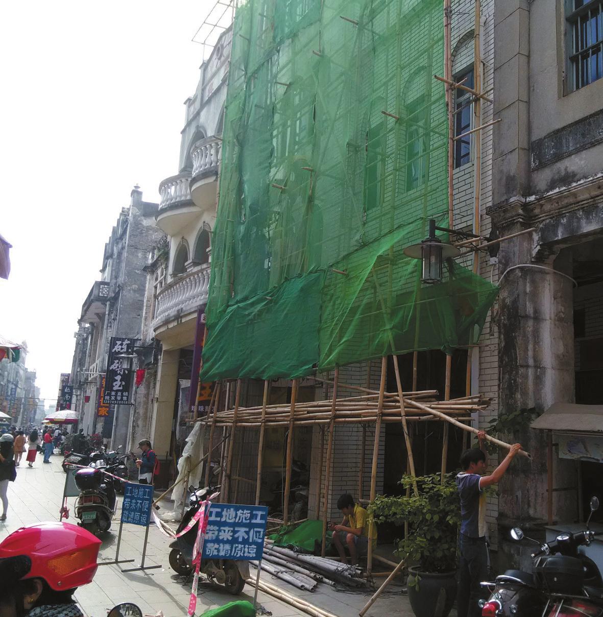 記者從市老城公司獲悉,近日,珠海中路立面修復(fù)工程啟動(dòng),目前有6間騎樓已經(jīng)搭起腳手架進(jìn)行修復(fù)。