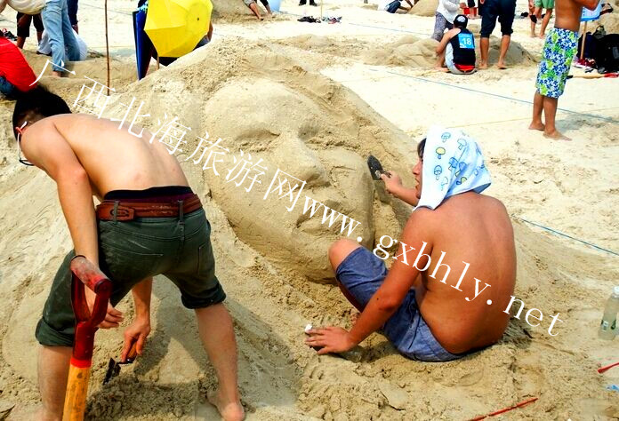 北海舉辦第九屆沙雕大賽,銀灘游客如潮
