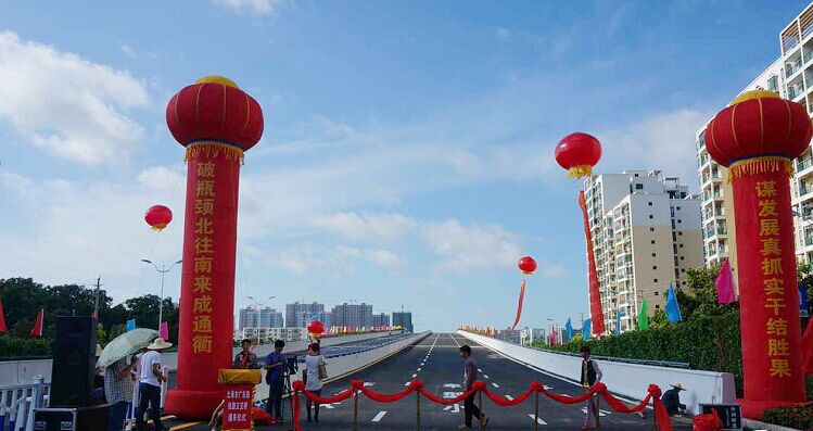 北海廣東路跨鐵路立交橋今日開始正式通車?yán),廣東南路跨鐵路立交橋起于廣東南路和站前路交匯處,向南跨越欽北鐵路,再與廣東南路順接。整個(gè)橋?yàn)槟媳弊呦,設(shè)計(jì)時(shí)速每小時(shí)50公里,瀝青混凝土路面。立交橋上的主車道為雙向6車道,預(yù)留非機(jī)動車道,橋下輔道(就是我們常說的火車橋底)雙向4車道,加起來等于雙向10車道,非常的寬闊。