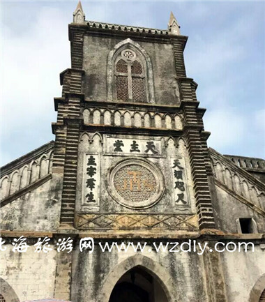 島上的盛塘村天主教堂是我國現(xiàn)存幾座較大的天主教堂之一,也是北海目前現(xiàn)存最早的西式建筑之一,是華南地區(qū)最早和最大的歐洲哥特式教堂。當(dāng)時(shí)還沒有鋼筋水泥,建筑材料全取自島上的珊瑚、火山巖石、石灰拌海石花及竹木建造。一百多年來,潿洲島天主教堂雖經(jīng)歷了多少風(fēng)雨的沖刷,仍保存完好。