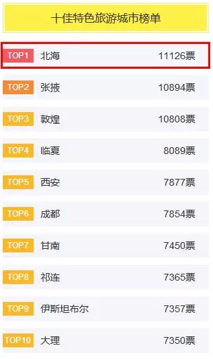 北海位居"十佳特色旅游城市"網(wǎng)投榜首