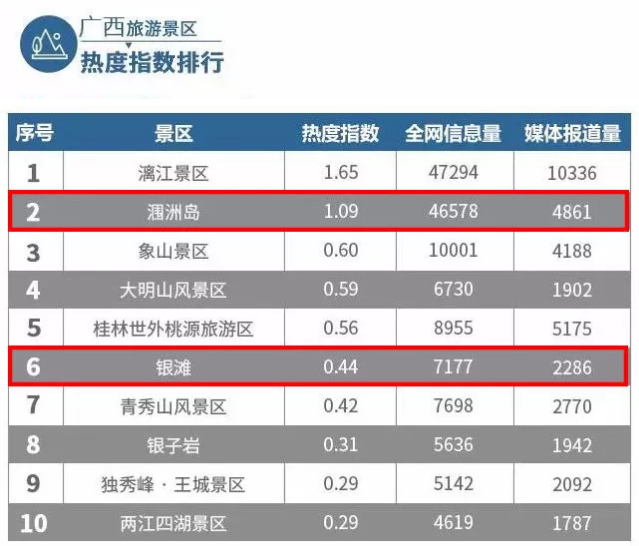 2月在廣西旅游景區(qū)熱度指數(shù)排行中,潿洲島熱度指數(shù)達(dá)1.09,全網(wǎng)信息量達(dá)46578,媒體報(bào)道量達(dá)4861,僅次于首位漓江景區(qū)。銀灘景區(qū)也排名這份榜單前列。