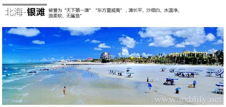 下午:游覽北海首家主題公園——大江埠風(fēng)景旅游區(qū):越南風(fēng)情村、欣賞異國風(fēng)情。自由活動暢游天下第一灘“北海銀灘”,盡情享受陽光、海水、沙灘。 住北海(三星酒店)