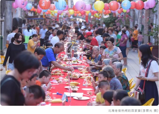 秋日“開(kāi)漁季”,大量海產(chǎn)品新鮮上市,正是享受各種海味的好季節(jié)。被譽(yù)為“深夜食堂”的僑港風(fēng)情街熙熙攘攘、人頭攢動(dòng),成為游客品美食、賞月景的游玩好去處。老城景區(qū)開(kāi)展的“中秋百家宴、幸福鄰里情”不僅拉近了鄰里之間的距離,同時(shí)還通過(guò)美食分享弘揚(yáng)了地方飲食文化特色,營(yíng)造了濃濃的中秋闔家團(tuán)圓的節(jié)日氛圍。
