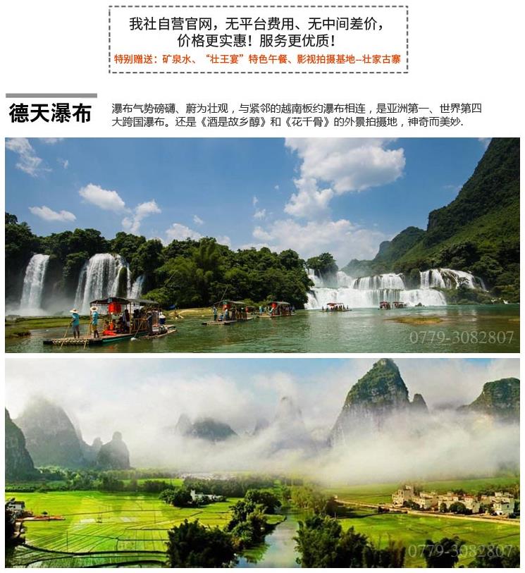 德天瀑布旅游線路定制、旅游包車咨詢電話:王淳 18077943768