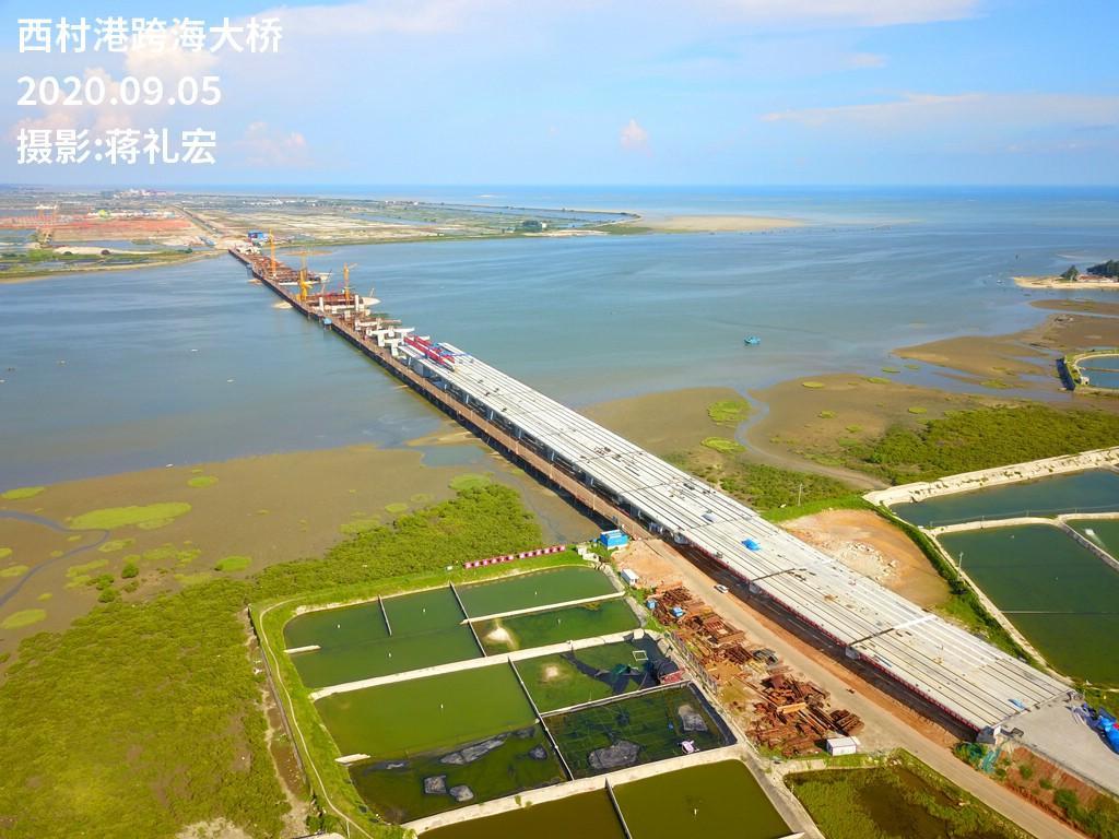 西村港跨海大橋全長2544.436米,其中主橋梁全長1775.8米,路寬60米