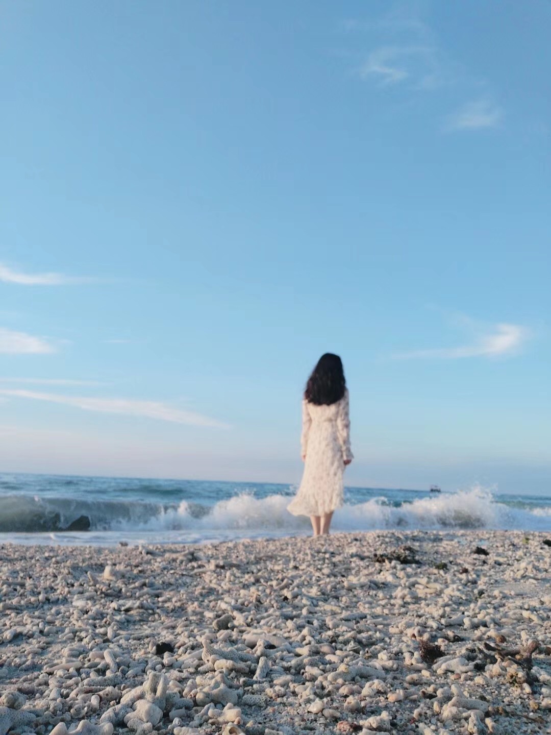 赤腳漫步在沙灘上,沙子細(xì)得宛如輕紗,說不出的輕柔感受。警惕的小沙蟹正在從洞穴里忙著往外搬運(yùn)小沙粒,稍有動(dòng)靜,就全部齊刷刷地退回了洞穴,機(jī)靈之極。