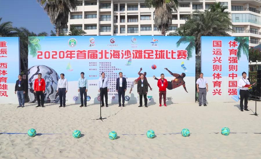 11月3日下午,2020年首屆北海沙灘足球比賽開(kāi)幕儀式在我市僑港海濱浴場(chǎng)舉行。中國(guó)足協(xié)社會(huì)足球部部長(zhǎng)李久全,自治區(qū)體育局黨組副書(shū)記、副局長(zhǎng)、廣西足協(xié)主席謝強(qiáng),市政府副市長(zhǎng)歐余軍,市政協(xié)副主席、市足協(xié)顧問(wèn)葉宗沛,國(guó)家沙灘足球隊(duì)領(lǐng)隊(duì)付玉培,廣西足協(xié)常務(wù)副主席龐東霞,市旅游文體局黨組書(shū)記李才能,市旅游文體局副局長(zhǎng)梁吉棉,銀海區(qū)副區(qū)長(zhǎng)王道波,廣西足協(xié)副主席、市足協(xié)主席李勝遠(yuǎn)等領(lǐng)導(dǎo)嘉賓出席開(kāi)幕式;組委會(huì)各成員單位的領(lǐng)導(dǎo),裁判員和各參賽隊(duì)伍的領(lǐng)隊(duì)、教練員、運(yùn)動(dòng)員,新聞媒體,以及市體育運(yùn)動(dòng)學(xué)校、區(qū)市共建水上項(xiàng)目和社會(huì)各界群眾約500人參加開(kāi)幕式。