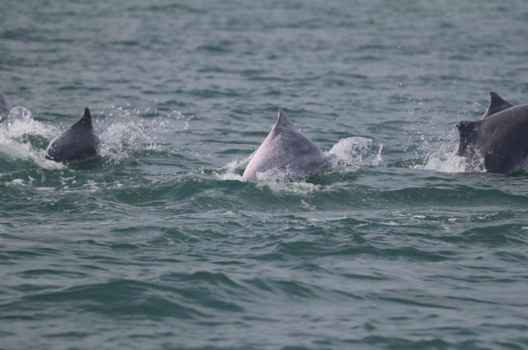 12月12日,儒艮國家級自然保護區(qū)管理中心與南京師范大學(xué),在保護區(qū)海域鯨豚船只調(diào)查發(fā)現(xiàn)最大中華白海豚群。當(dāng)天共發(fā)現(xiàn)中華白海豚種群5群次,最大群頭數(shù)30頭次。這是近三年鯨豚調(diào)查發(fā)現(xiàn)最多的一天。