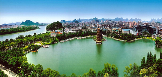 (約50分鐘),座落在桂林城的中軸線上,與象山上的普賢塔、塔山上的壽佛塔,相互呼應(yīng),相互映襯,有“四塔同美”之說,是兩江四湖環(huán)城水系中最著名的旅游景點(diǎn)。整座銅塔創(chuàng)下了吉尼斯三項(xiàng)世界之最:世界上最高的銅塔,世界上最高的銅質(zhì)建筑物,世界上最高的水中塔。