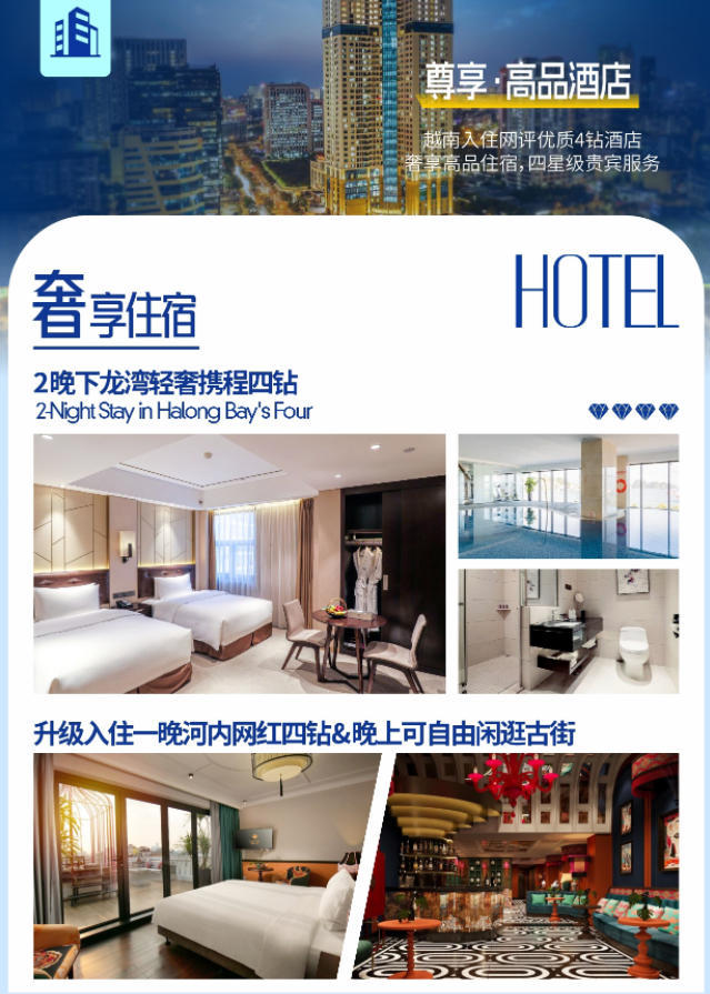 (3)越南三星三人間數(shù)量有限,四星無(wú)三人間,如拼不上房請(qǐng)自補(bǔ)房差。行程里的時(shí)間僅供參考具體以當(dāng)時(shí)游覽時(shí)間為準(zhǔn);