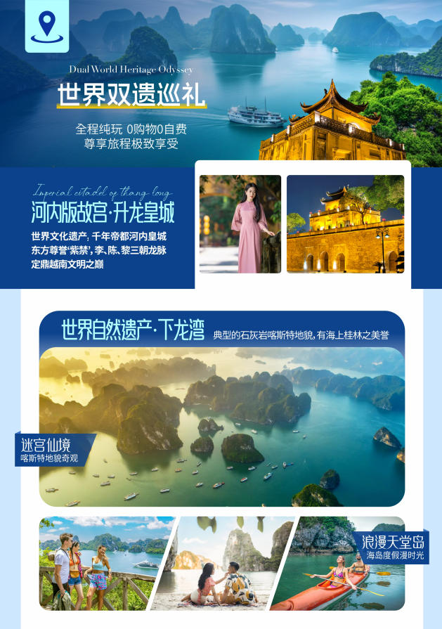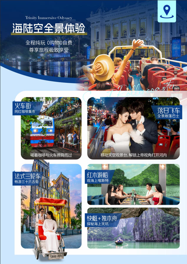 4、景點(diǎn):行程中所列景點(diǎn)首道門票;特別聲明:行程中“印象越南表演、 天堂島、月亮湖、迷宮、巡州島”均為我社特別贈(zèng)送項(xiàng)目,如不可抗力因素不能游覽或游客不參與游覽,亦無(wú)費(fèi)用減退