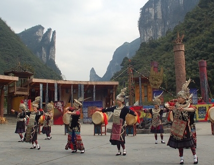 鳳凰神鳳文化名勝區(qū)--【南華山】,(約2個小時) 山不在高,有仙則靈。鳳凰神鳳文化景區(qū)位于鳳凰古城南華山國家森林公園境內(nèi),景區(qū)大門毗鄰虹橋,依山傍水,俯瞰整個鳳凰古城。BUS赴天下第一鼓鄉(xiāng)——【德夯苗寨】,苗寨將從跨越矮寨大峽谷,居世界第三,亞洲第一的【矮寨特大懸索橋】下經(jīng)過。沿著美麗的大峽谷,領(lǐng)略大自然的絕美風光,有全國落差最大的瀑布---流沙瀑布,孔雀開屏,姐妹峰,駟馬峰,苗家做客,享受貴賓待遇的苗家攔門歌舞表演,喝一口苗家阿妹送上的醇香的包谷燒,做一回苗家漢子(阿妹)。中餐后下午可觀看景區(qū)表演的大型的民族服飾表演,您可以參與體驗吹嗩吶,推磨,碾米等互動活動(視節(jié)目表演表或客人時間安排),品嘗苗鄉(xiāng)小吃:水蜈蚣,桃花魚,桃花蝦。。乘下午19:15分的2011次空調(diào)火車返南寧。