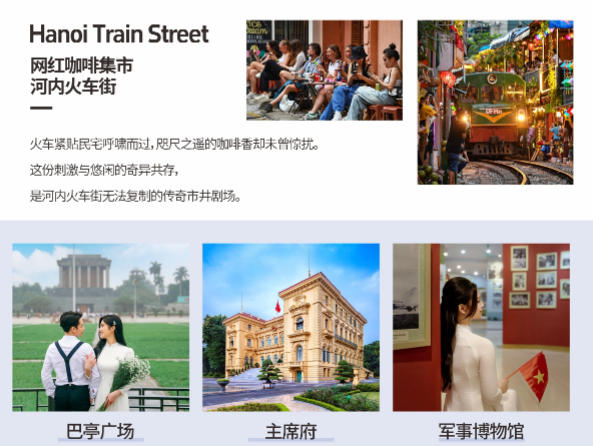 隨后前往網(wǎng)紅打卡地:本地人才知道的河內(nèi)【火車街】。有一條鐵路,穿越河內(nèi)人的前廊,沉浸在人們的生活中。穿越這里的“傳奇”鐵路彎道吸引了眾多國(guó)際游客。從它在外國(guó)報(bào)紙上刊登作為每次來(lái)河內(nèi)必去的地方的那一天起,火車附近就非常繁忙。但它的安靜空間并沒(méi)有被打破。來(lái)自世界各地的游客前來(lái)參觀,他們都在“培育”這個(gè)村莊,因?yàn)檫@里的人們每天都在保護(hù)它。馬路兩旁是一排排房子緊挨在一起,有著可愛(ài)的小攤位和茶點(diǎn)咖啡館。當(dāng)火車緩緩駛過(guò),超近距離感受到火車的轟鳴和力量,體驗(yàn)與火車“零距離”接觸的驚險(xiǎn)與刺激。超驚險(xiǎn)的感覺(jué)!