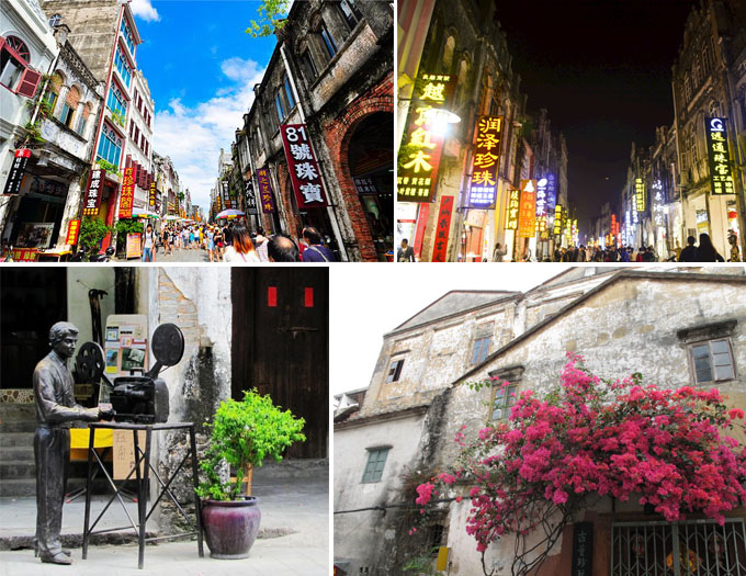 位于珠海路,是一條頗有歷史韻味的百年老街。這里遍布英、法、德國(guó)領(lǐng)事館舊址,當(dāng)你行走在這些可以遮風(fēng)擋雨,躲避烈日的中西合璧騎樓下,穿行那一條條綿長(zhǎng)幽深而又黑暗深遽的小巷道,磨亮的藤椅上悠閑的老人,古老的街角上淳樸的小販,斑駁的老墻上爬滿的綠苔,破舊的窗戶外懸掛的衣服,無(wú)不訴說(shuō)著這里的過(guò)去。仿佛那一刻穿越歷史,穿越時(shí)空,看到了老街昔日喧囂的車馬人流,燈紅酒綠。