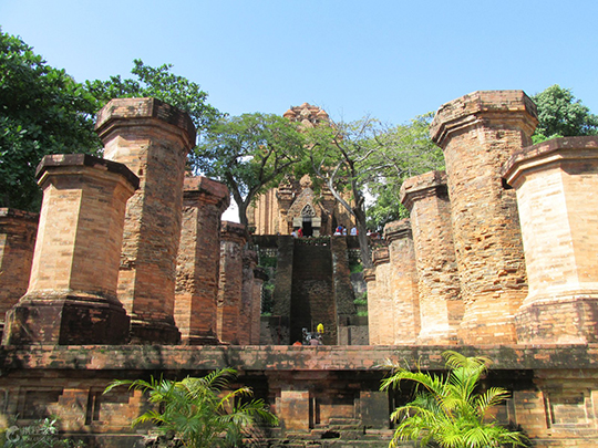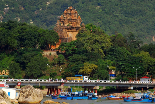 婆那加是音譯,也有翻譯作天依女神廟。這里供奉的是天依女神(Po Nagar),天依女神是庇佑占婆王國(guó)南部的一位女神,保護(hù)著靠海吃飯的漁民,相當(dāng)于中國(guó)漁民心目中的媽祖。不過(guò)據(jù)說(shuō)早在公元前二世紀(jì),印度教就在這里供奉印度教希瓦神(Siva)了。婆那加占婆塔建于公元7-12世紀(jì)間,是印度教的建筑。占婆塔的建筑風(fēng)格有些吳哥窟的味道,但是規(guī)模小的多,雕刻也沒(méi)有那么的細(xì)致,F(xiàn)在來(lái)這里參拜的,不僅有越南人,也有當(dāng)?shù)氐暮芏嗳A人,進(jìn)門(mén)的時(shí)候,別忘了脫鞋。從位于小山上的占婆塔往下看,能看到芽莊碧藍(lán)的海港。