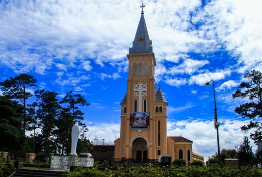 芽莊教堂是一座哥特式教堂,建于1928至1933年。教堂有鐘塔和美如錦花、繪滿《圣經(jīng)》故事的天窗玻璃,石頭建造的內(nèi)部墻壁給人清涼之意。教堂外是繁雜吵嚷的街頭,教堂內(nèi)則靜謐平和,儼然另一個(gè)世界。教堂每天早晚舉行彌撒活動(dòng),常能在門外聽見(jiàn)誦經(jīng)聲或唱詩(shī)班美如天籟的歌聲。