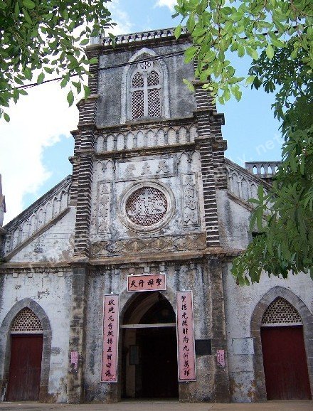 潿洲島天主教堂是法國文藝復(fù)興時期哥特式建筑,整個建筑群由教堂、男女修道院、醫(yī)院、神父樓、育嬰室等組成。當(dāng)時還沒有鋼筋水泥,建筑材料全取自島上的珊瑚、巖石、石灰拌海石花及竹木建造。一百多年來,潿洲島天主教堂雖經(jīng)歷了多少風(fēng)雨的沖刷,仍保存完好。