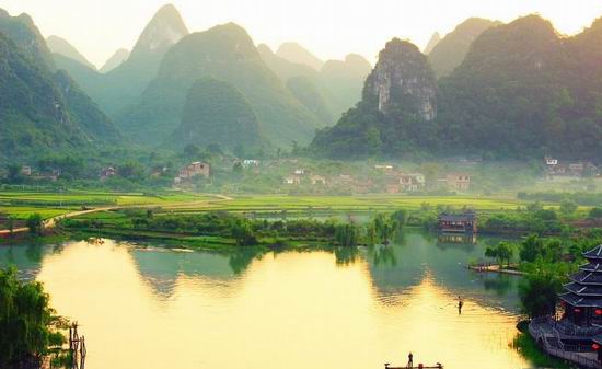 “桂林山水甲天下,陽朔山水甲桂林”。陽朔位于廣西壯族自治區(qū)東北部、桂林市東南面,始建于隋朝開皇十年(公元590年),已有1400多年歷史?h城距桂林市區(qū)陸路65公里、水路83公里。全縣面積1428.38平方公里,總?cè)丝?0萬人。陽朔是馳名中外的旅游勝地,旅游資源十分豐富,為典型的喀斯特巖溶地貌;漓江流經(jīng)境內(nèi)的63公里河段是漓江風(fēng)光最精粹部分,是甲天下的桂林山水精華所在地。縣境內(nèi)山川秀美,景觀奇特,其特點(diǎn)是:“山青、水秀、洞奇、石美”!肮鹆稚剿滋煜,陽朔堪稱甲桂林”高度概括陽朔山水在世界所處的地位。全縣擁有奇特山峰2萬多座,大小河流17條,250多個(gè)自然景點(diǎn)和人文景觀。